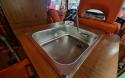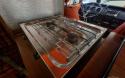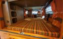 Inside, it retains all the charm you’d expect from a classic Westfalia, with the vibrant orange plaid interior running throughout. The layout includes a full-width rock and roll bed, cleverly designed storage with twin wardrobes, a sink, fold-down gas hob, and a fridge (recently replaced). The original-style details continue with the Westfalia swing-out table and the often-missing sink lid that doubles as a cab table.